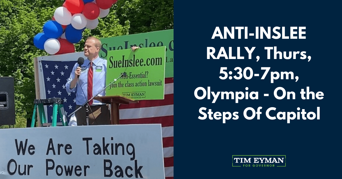 - Join me/us this Thurs, May 14, 5:30-7pm for our huge anti-Inslee rally. LOCATION CHANGE: we are now meeting on the steps of the Capitol building.