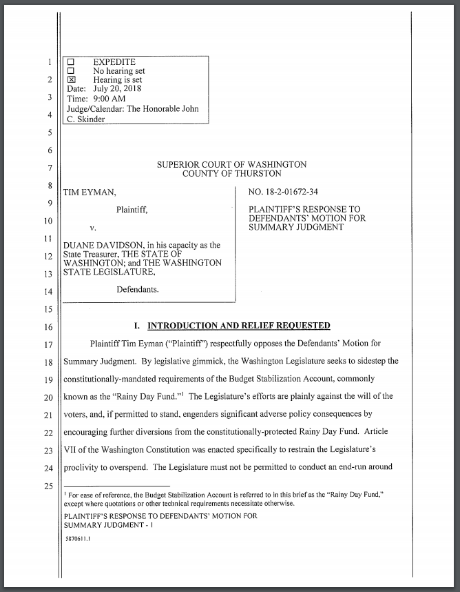 Eyman’s lawsuit on the Rainy Day Fund: major milestone reached this week