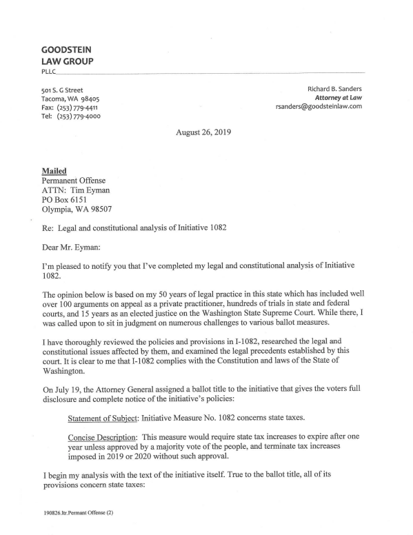 Former Supreme Court Justice Richard Sanders Thorough 7-Page Legal Analysis Of I-1082