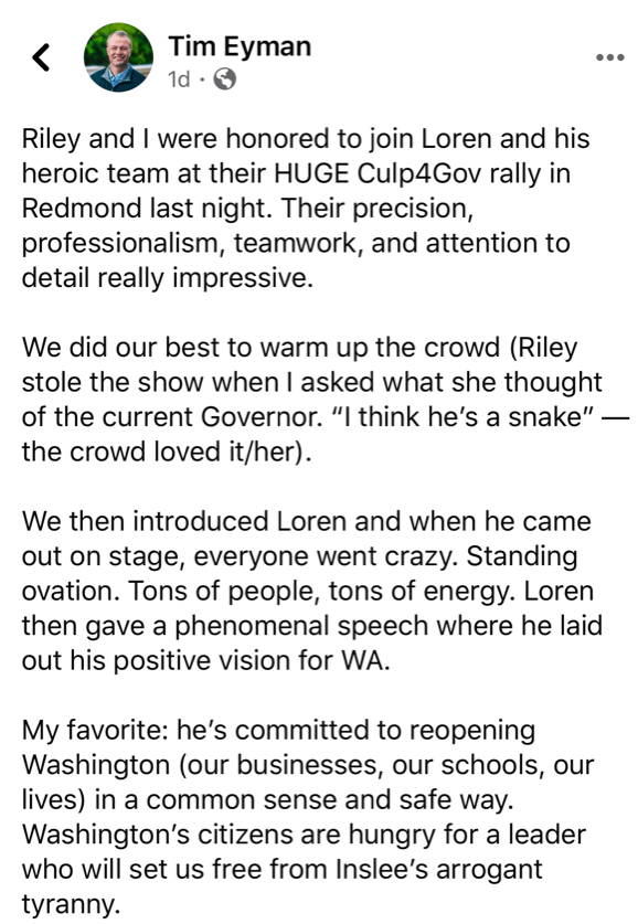 These HUGE rallies show that people are hungry for Loren’s leadership to bring back common sense to Olympia and lead Washington’s comeback.
