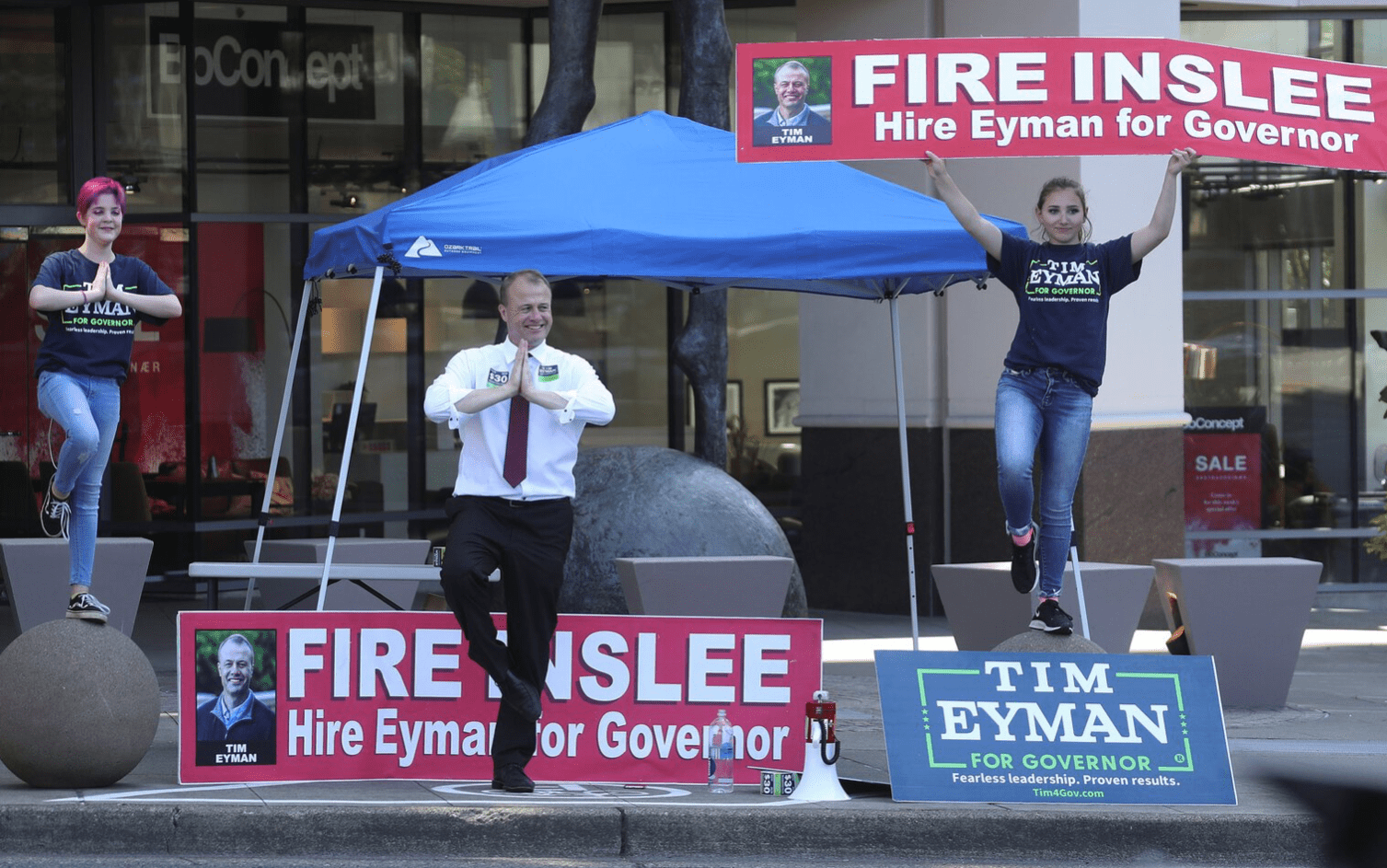 By mailing a check: Tim Eyman Legal Defense Fund, 500 106th Ave NE #709, Bellevue, WA, 98004