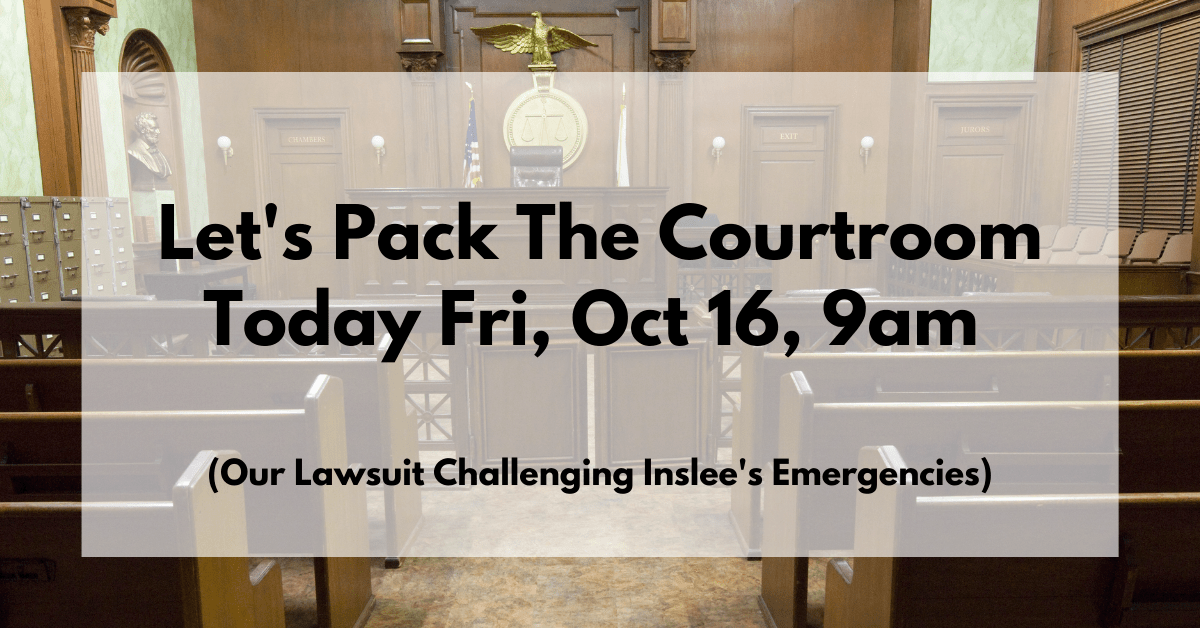 Let’s Pack The Courtroom Today Fri, Oct 16, 9am (Our Lawsuit Challenging Inslee’s Emergencies)