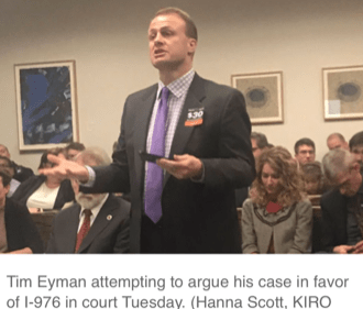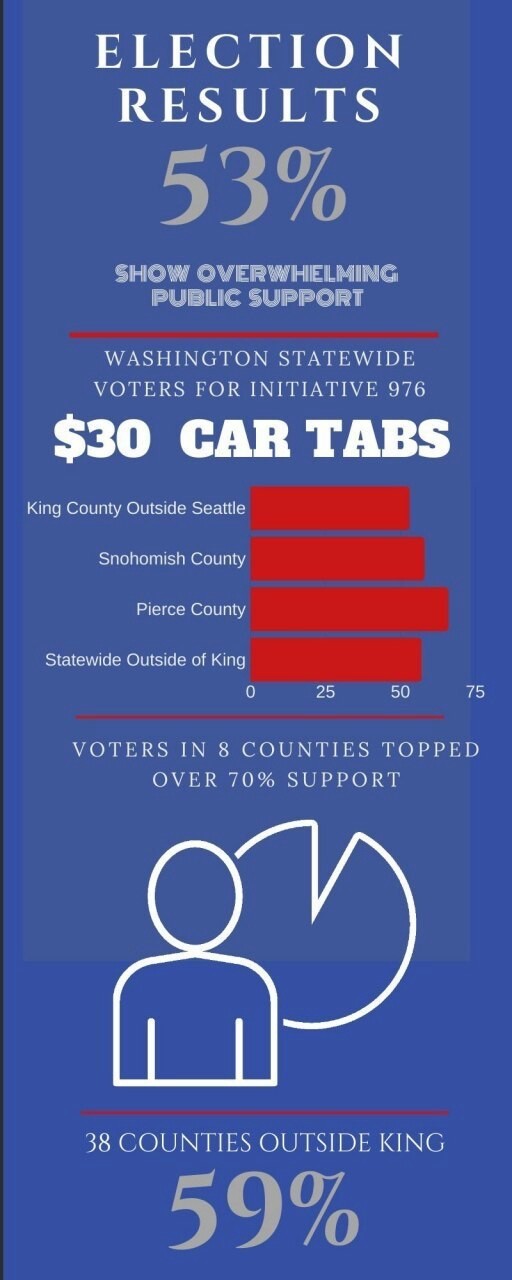 We got I-976 qualified, passed, and upheld by that King County judge. Karen and I sacrificed a lot — we sold off our retirement fund to kickstart its signature drive:
