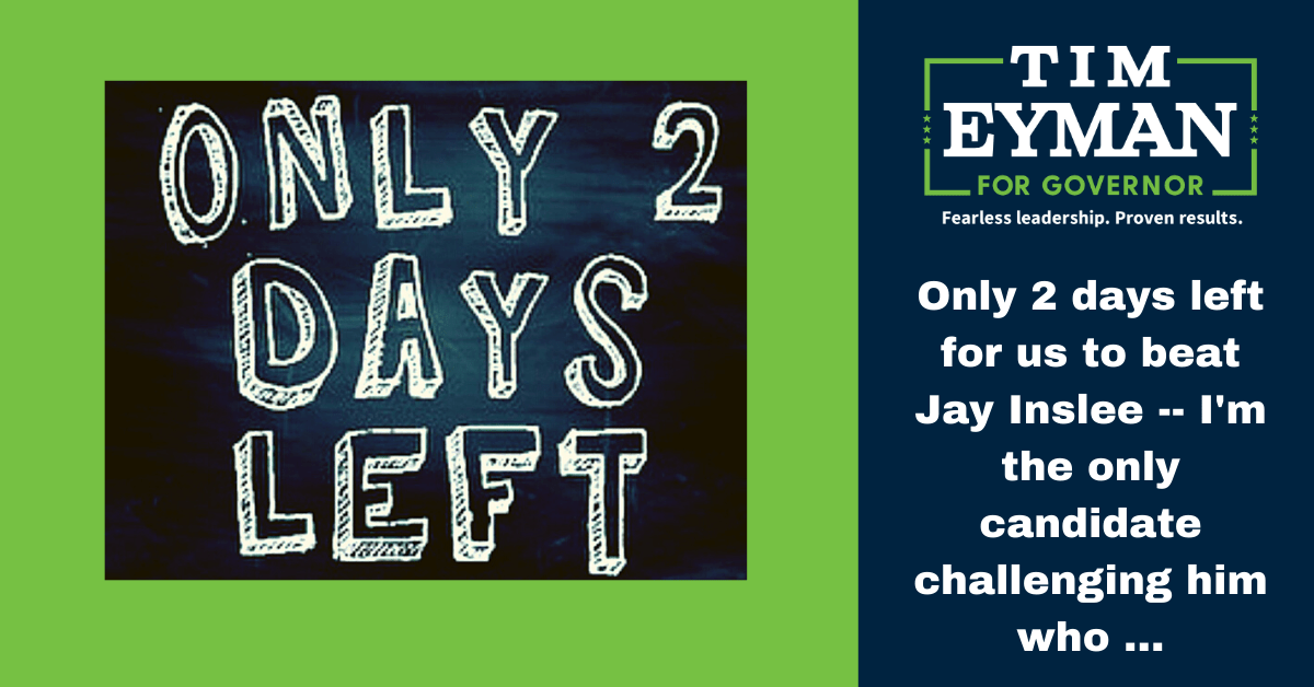 Only 2 days left for us to beat Jay Inslee — I’m the only candidate challenging him who …