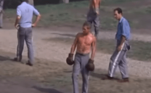 In it, Paul Newman is boxing with George Kennedy in a prison yard.